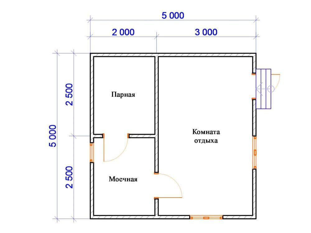 Планировка (план) бани 3х5 мойка и парилка отдельно.