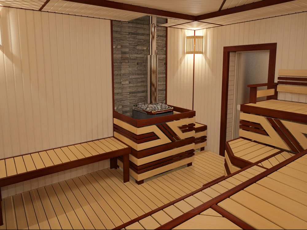 Для отделки стен можно использовать и несколько сортов древесины, например, сочетая темные и светлы тона. Липа, осина имеют приятный оттенок и комфортны для кожи, поэтому часто именно эти породы дерева используют для стен парилки. В комнате для отдыха наиболее удачно использовать ароматные кедровые или можжевеловые доски. Традиционно для финской сауны использование ели и сосны для стен. Как правило, для внутренней отделки стен применяют термовагонку, предназначенную именно для стен бани (на ней не образуется трещин, плесени, грибка, она не гниет и не пересыхает).