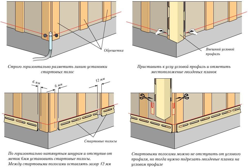 Стартовая рейка является необходимым элементом и монтируется по всему периметру стены. Перед отделкой может производиться укладка утеплителя, но возможно монтировать панели и без теплоизоляционного слоя. В первом случае нужно выбрать вариант материала для утепления, а также понадобится пароизоляционная плёнка.