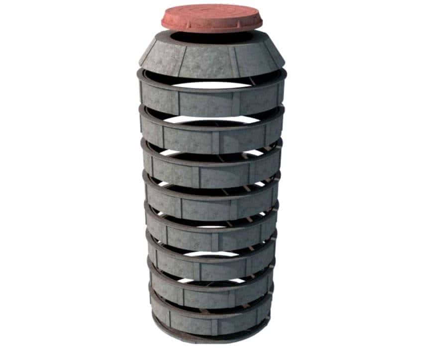сборные конструкции, в основе которых располагаются полимерные кольца для колодца определенного диаметра.