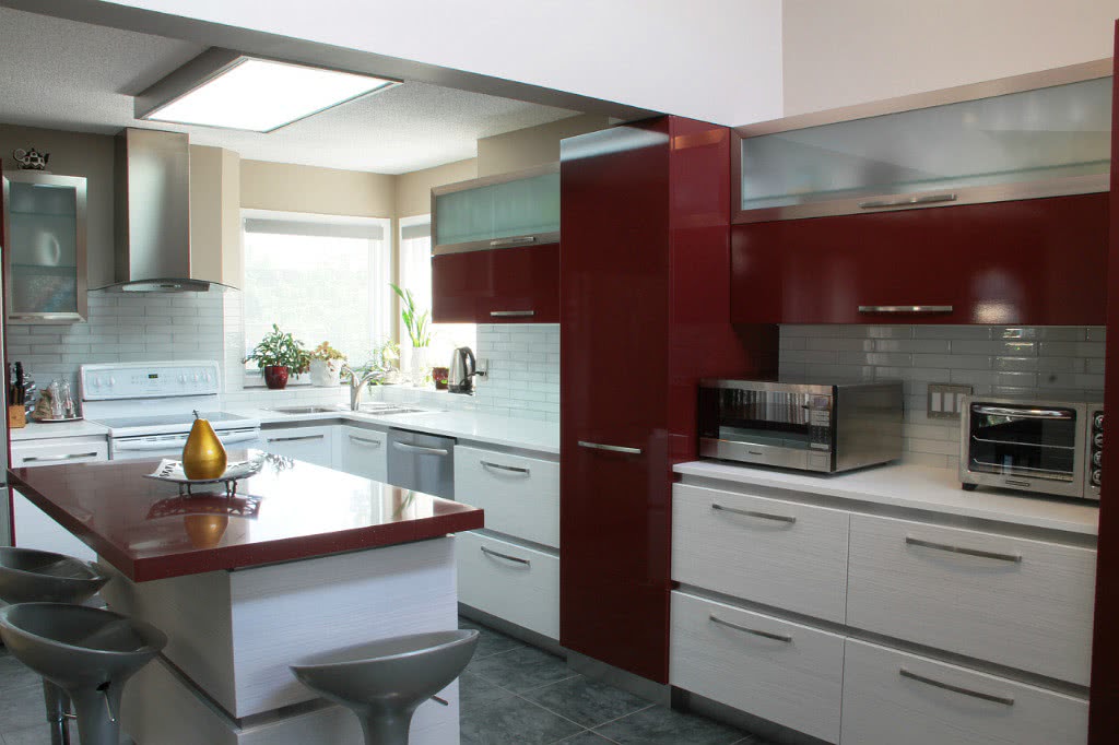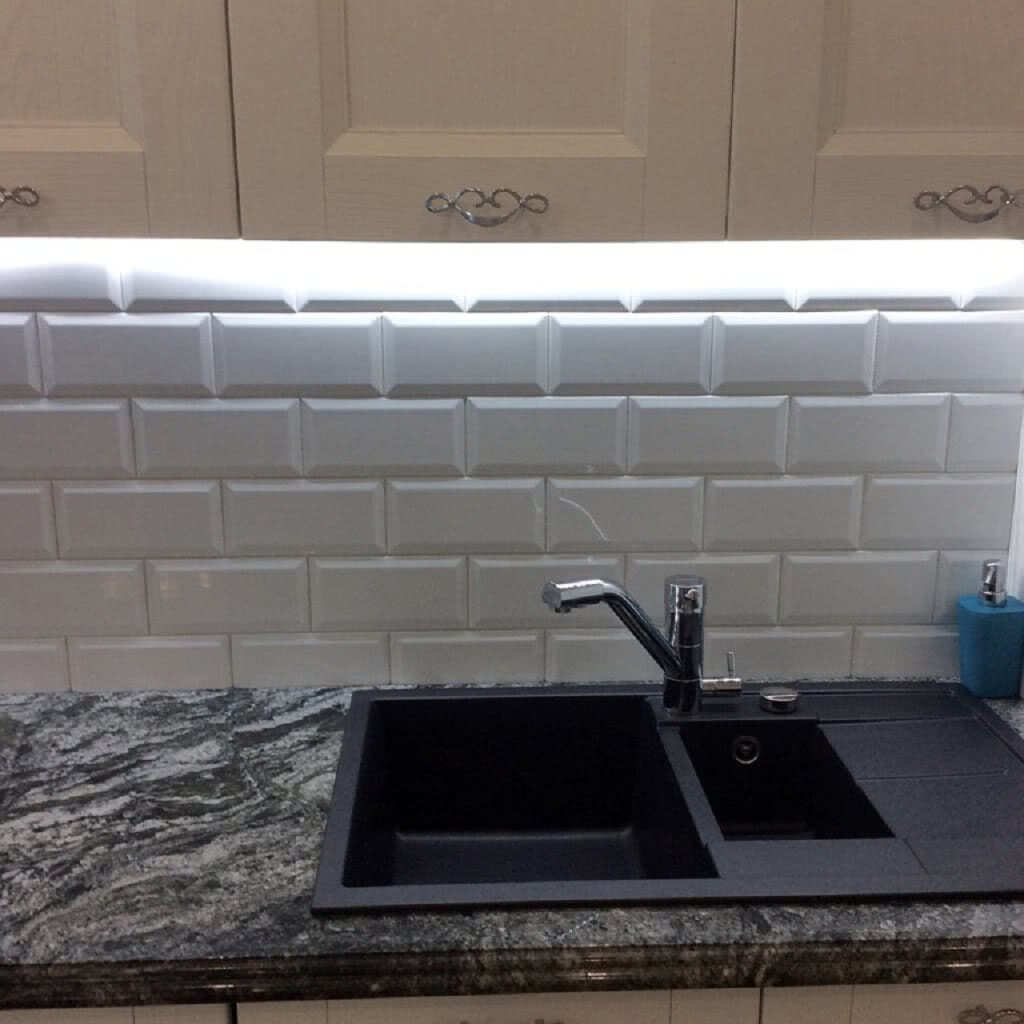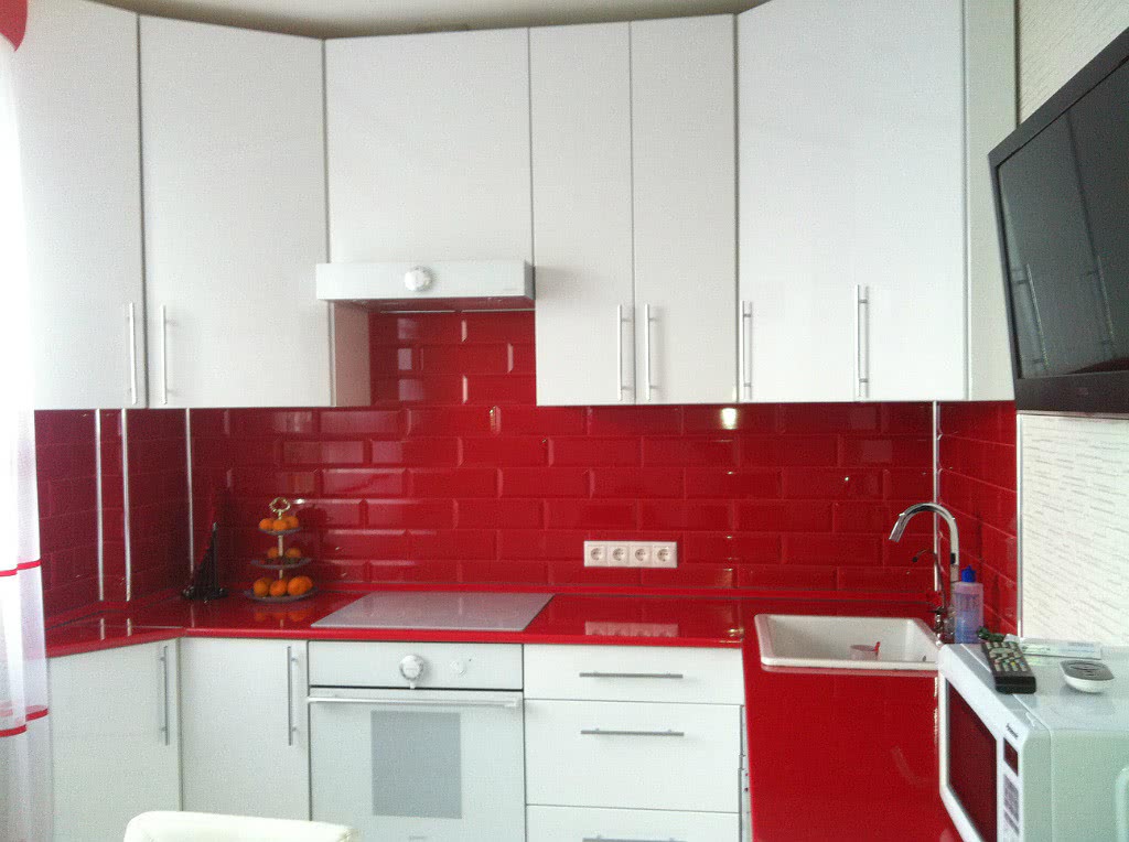 Кухню в однотонных светлых тонах отлично разбавит яркое цветовое пятно. Для фартука в таком интерьере хорошо подойдет яркая желтая плитка кабанчик или зеленая плитка кабанчик. Отлично разбавит цвет плитка голубой кабанчик или плитка кабанчик глянцевая лиловая или кабанчик серый. Если ваш выбор — красная или бирюзовая плитка кабанчик, кладка должна быть идеальной, потому что эти цвета буквально притягивают к себе взгляды всех входящих на кухню.