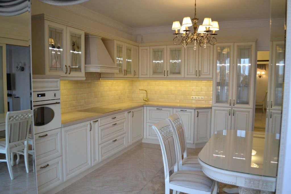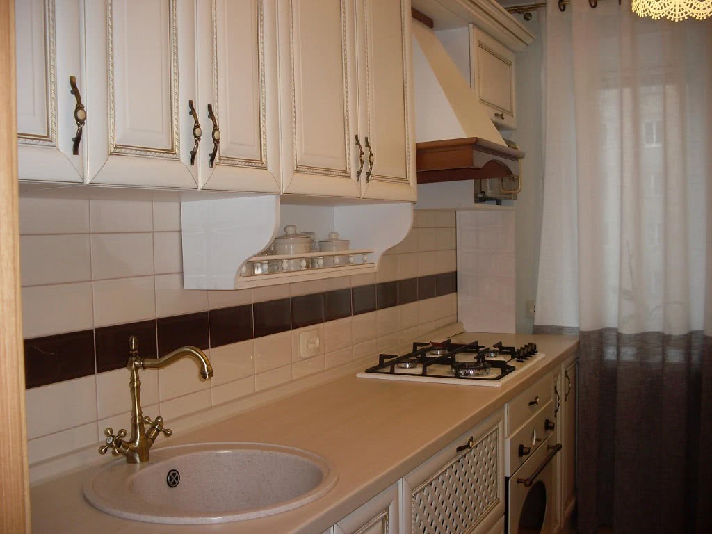 В классическом стиле с деревянной мебелью хорошо будет смотреться белая или бежевая плитка.