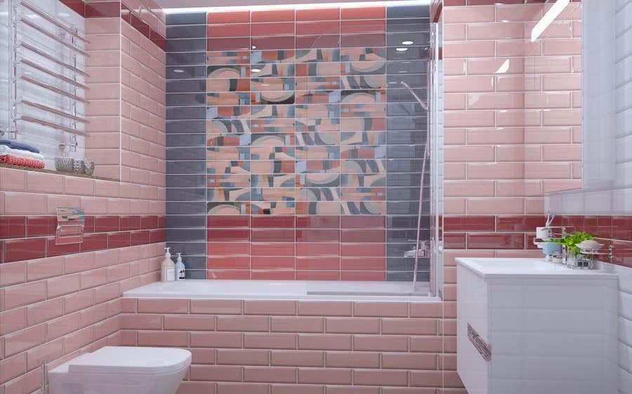 Оригинальное сочетание расцветок плитки кабанчик в ванной.