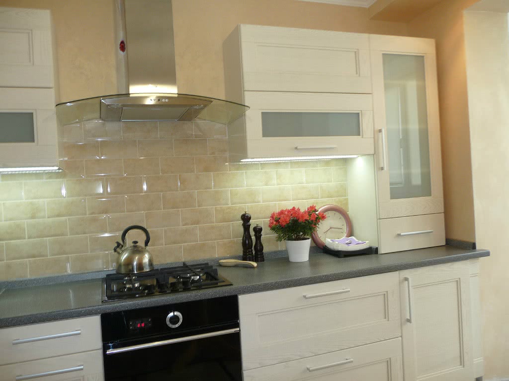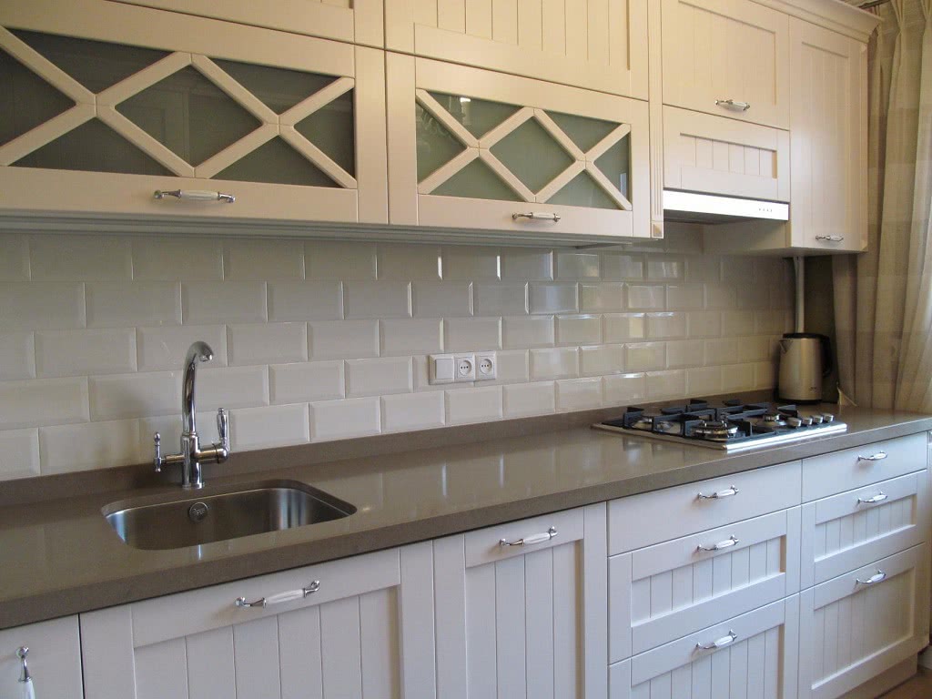 Если вы хотите непременно, чтобы вашу кухню украшал фартук из кабанчика, но до конца еще не определились с направлением стиля интерьера, выбирайте классику: белая плитка кабанчик, бежевая плитка кабанчик и даже плитка для кухни кремовая идеально впишутся в любой стиль и будут гармонично смотреться с кухонной мебелью любого цвета.