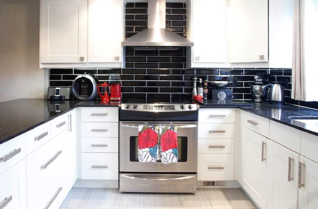 Плитка кабанчик черный будет смотреться эффектно в сочетании с черными или с белыми мебельными фасадами, а также с деревом любых оттенков. Для решений в стиле лофт и в скандинавском стиле актуально нетрадиционная раскладка, использование контрастов в схеме плитка-плитка (чередование черно-белых кирпичиков) или плитка-шов (использование контрастных затирок).