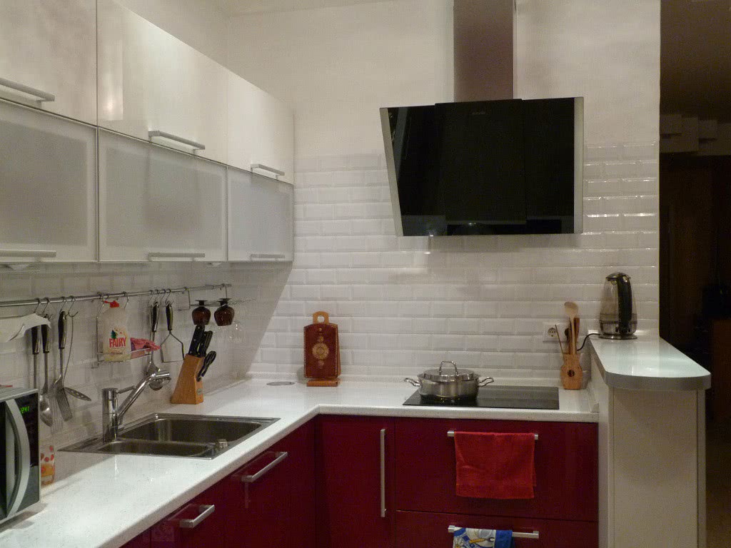 Для фартука на маленькой кухне лучше всего выбрать раскладку традиционную или с зигзагом. Этот вариант укладки будет смотреться в небольшом заставленном мебелью и бытовой техникой помещении наиболее выигрышно.