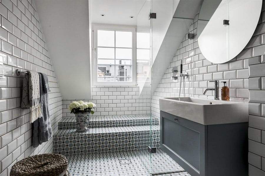 Плитка кабанчик подходит для оформления ванных комнат с любым интерьером.