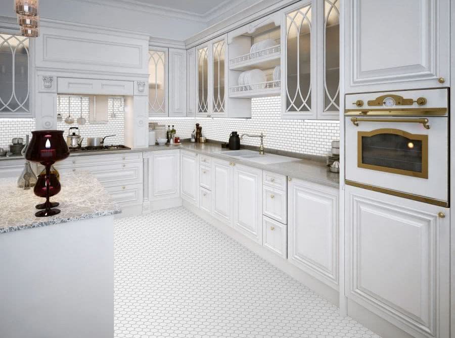 Шестиугольная плитка – идеально подходит для кухонного пола