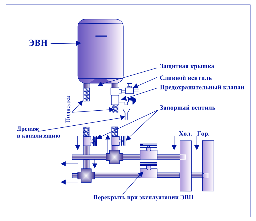 Чтобы слить воду из бойлера, нужно еще на этапе монтажа оборудования провести качественное подсоединение к трубе водоснабжения. Только в таком случае возможно при необходимости опустошить емкость с водой. Делается это последовательно.