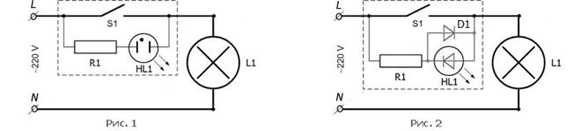 Важно знать, что для реализации этой функции в конструкции выключателя предусмотрена неоновая маломощная лампочка, которая подключена параллельно с клавишей включения/отключения LED -лампы