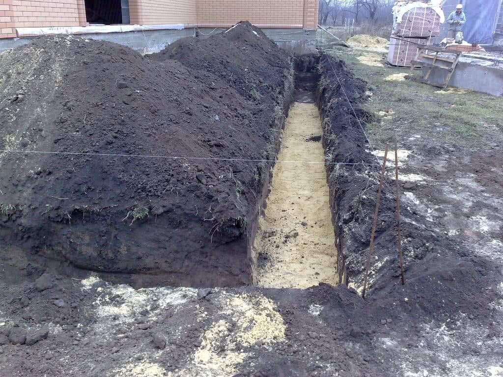 Траншею под фундамент можно подготовить вручную или использовать услуги экскаватора. Полученное основание необходимо вручную тщательно выровнять, убрать неровности и обрушения.