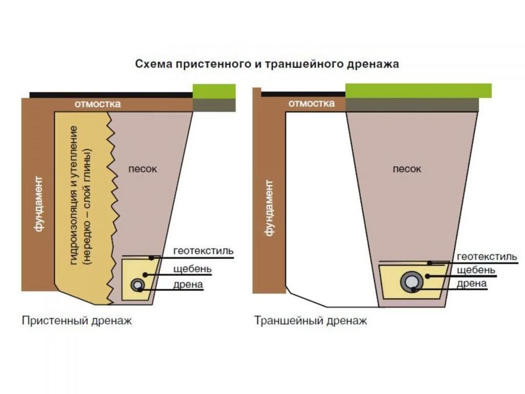 Поземный внутренний дренаж, необходим только при высоком уровне грунтовых вод, в условиях повышенной влажности.