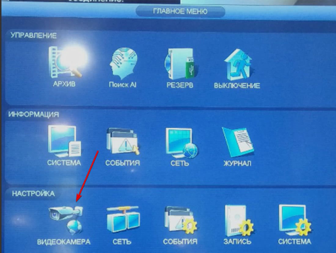 Заходим в главное меню и переходим в раздел Видеокамера.