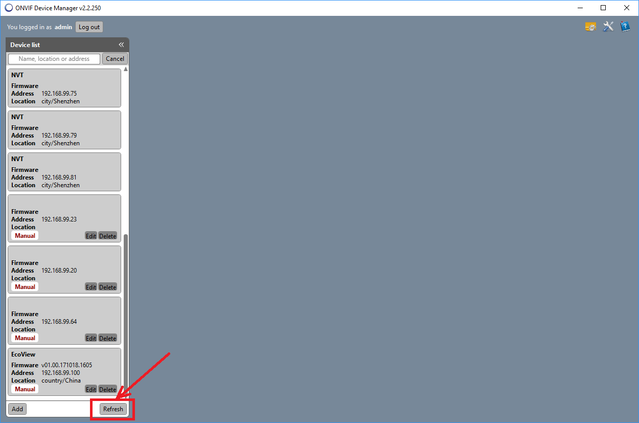 После того, как удалось определить ONVIF порт камеры, ее можно подключить к ПО ONVIF Device Manager.