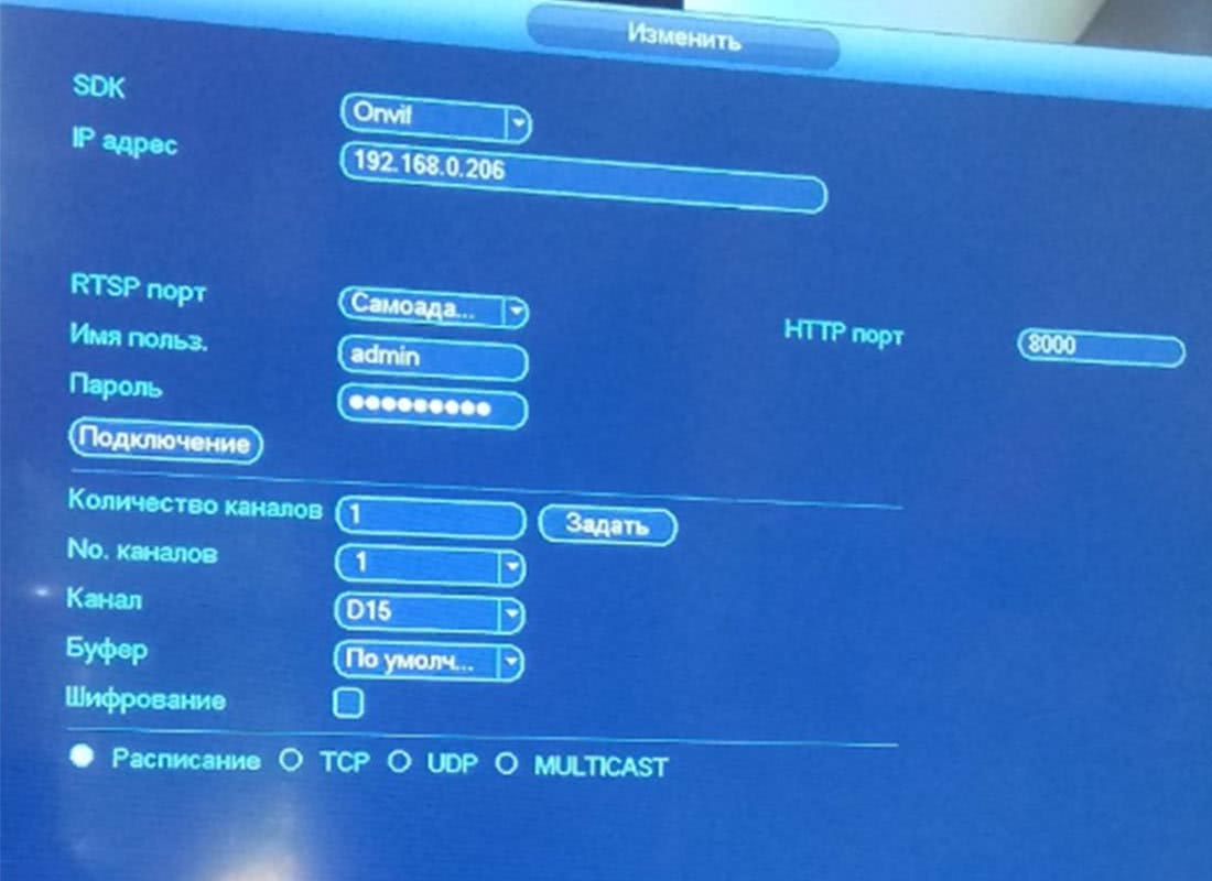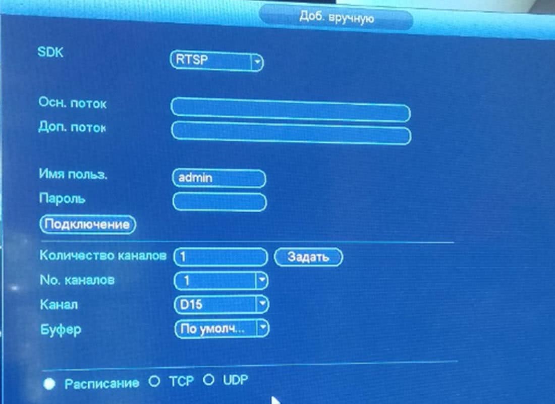 При подключении по RTSP строка запроса вводится в регистратор не самым очевидным способом.