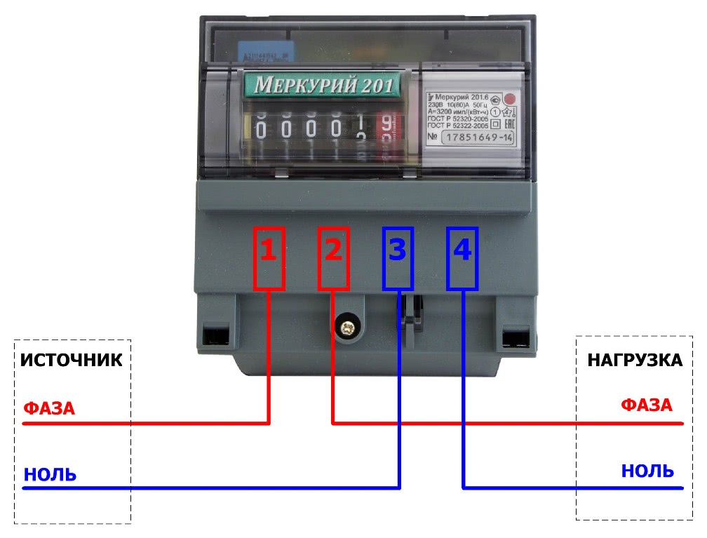 Подключение счетчика марки Меркурий 201 производится без особенностей, аналогично другим приборам учета электрической энергии. К устройству прилагается подробная инструкция, которую необходимо изучить, вместе с паспортом и схемой подключения