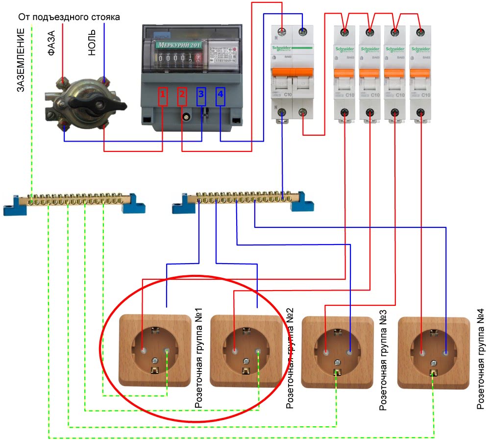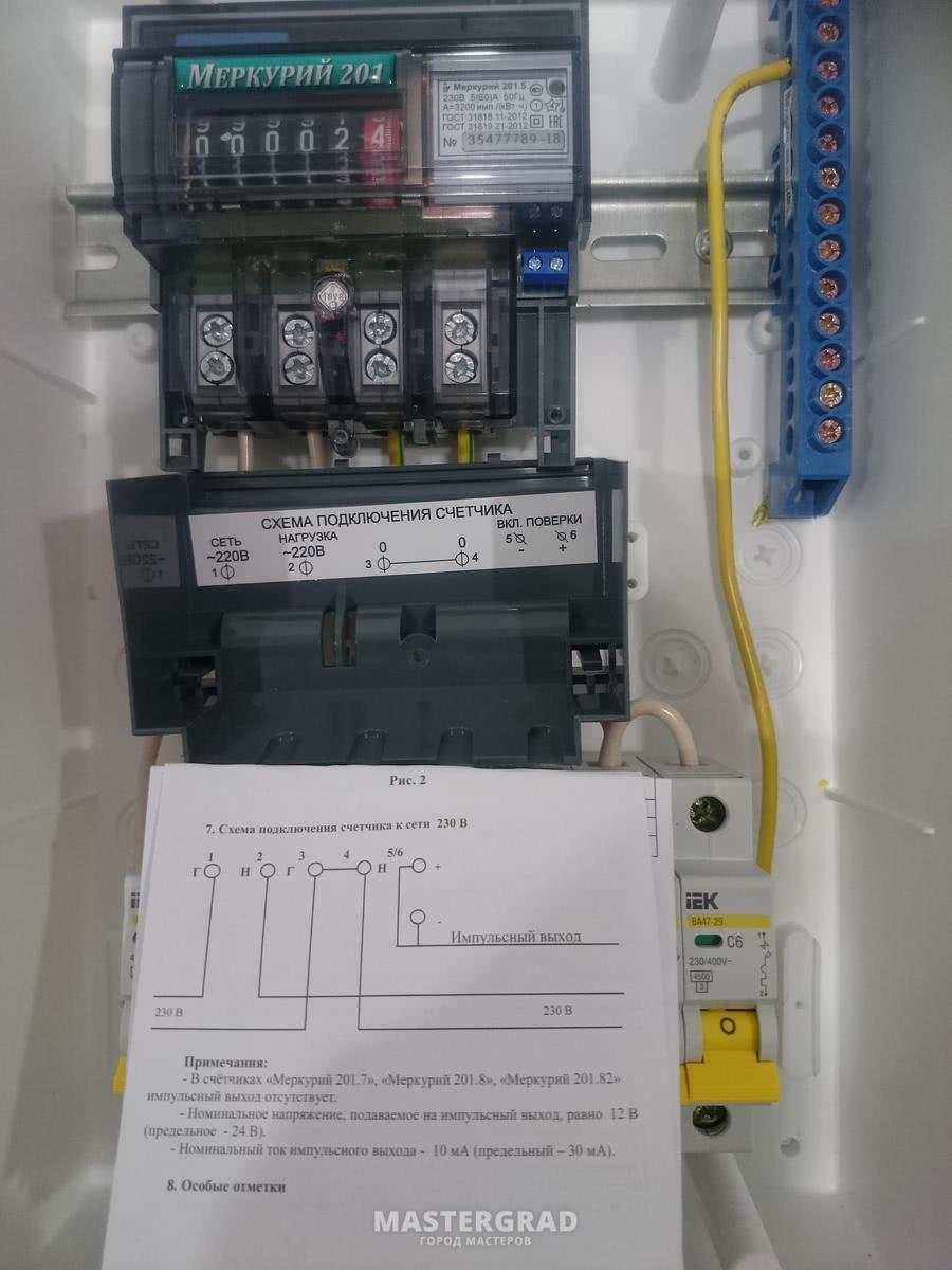 Для надежной и безопасной эксплуатации счетчика Меркурий 201 подключение рекомендуется производить через автоматические выключатели с использованием УЗО — устройства защитного отключения. Его следует устанавливать тоже в щитке. Во избежание проблем с работой сечение проводов должно соответствовать номинальному току счетчика