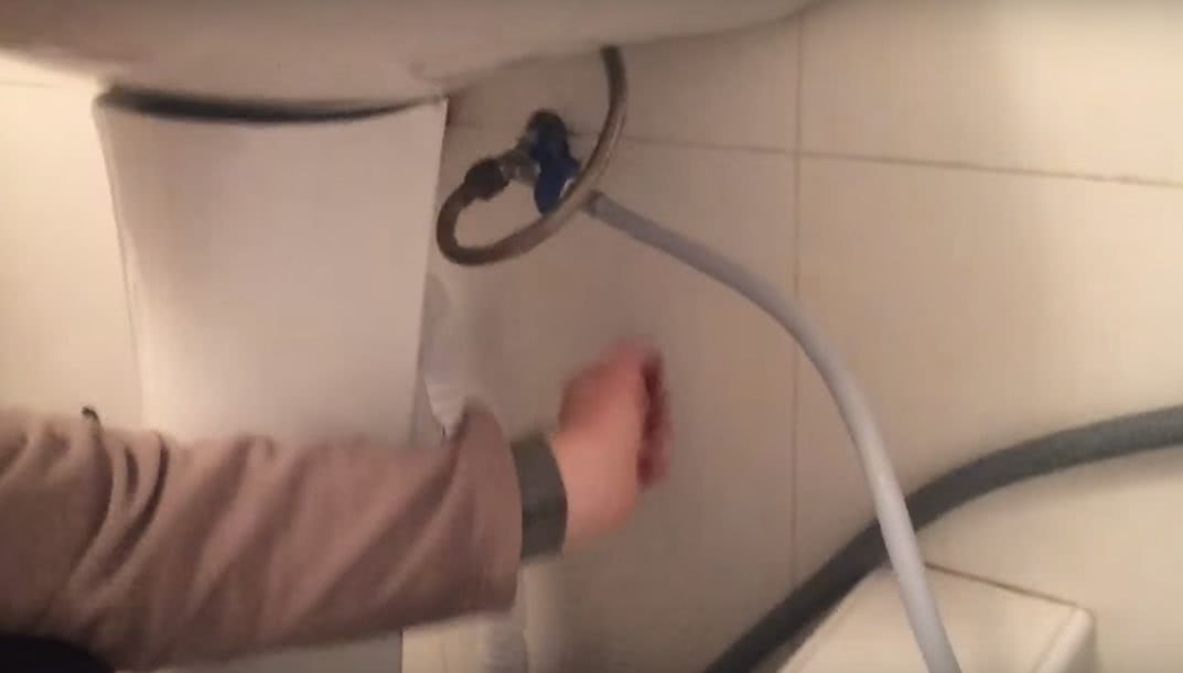 4. Подсоединяем трубы к умывальнику и стиралке. Устраиваем пробную стирку, чтобы проверить герметичность соединений.