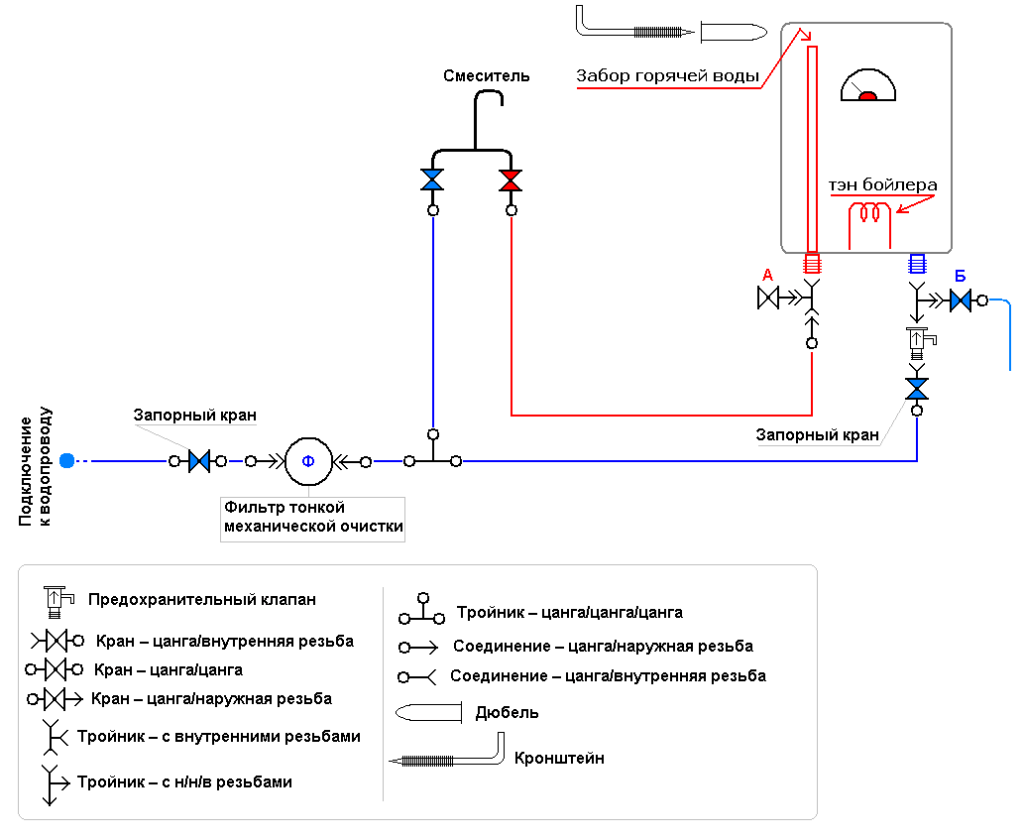 Схема подключения бойлера к водопроводу