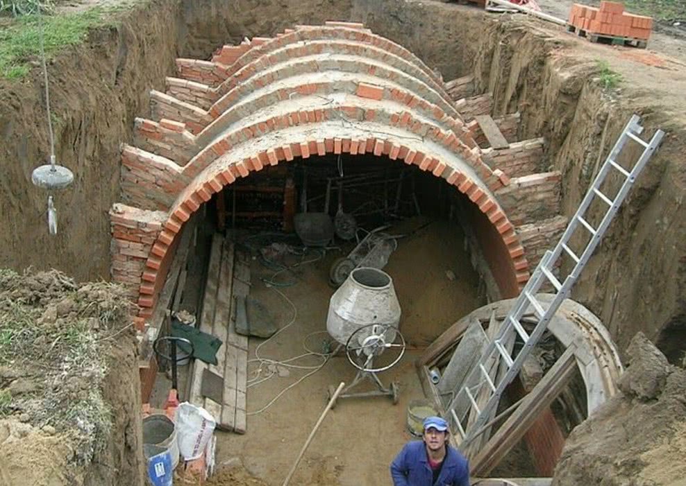 Традиционные, проверенные столетиями природные материалы. Позволяют создавать погреб в доме своими руками любой формы, вплоть до сводов и арок. Кирпич используется только красный, хорошо обожжённый, типа «Железняк». Силикатный кирпич при подземном строительстве не применяется.
