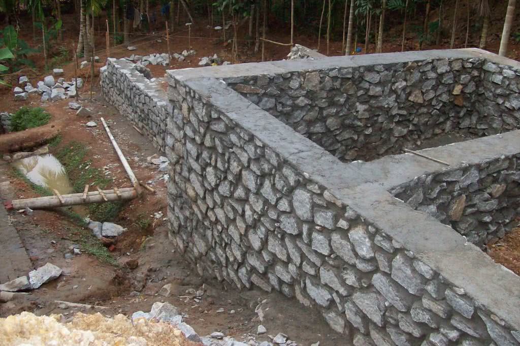 - Камень бутовый: стена 600 мм, подошва фундамента 800 мм.