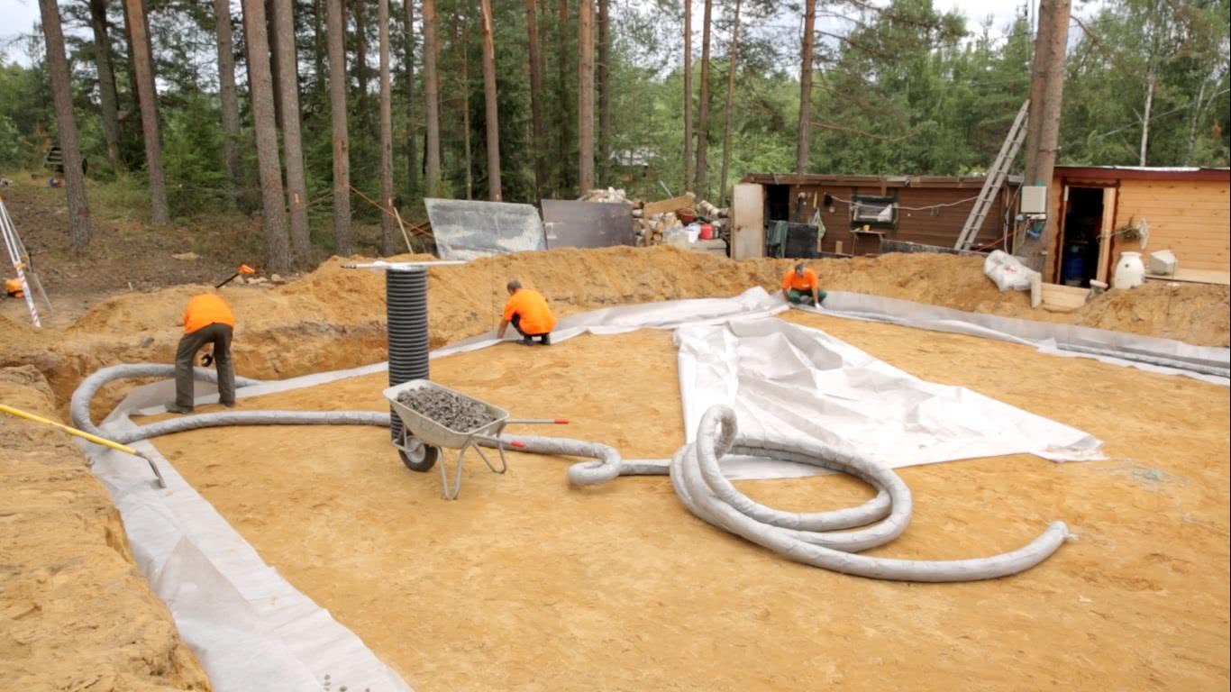 - Под ней по периметру фундамента на глубину 1,5 метра выбирается грунт.