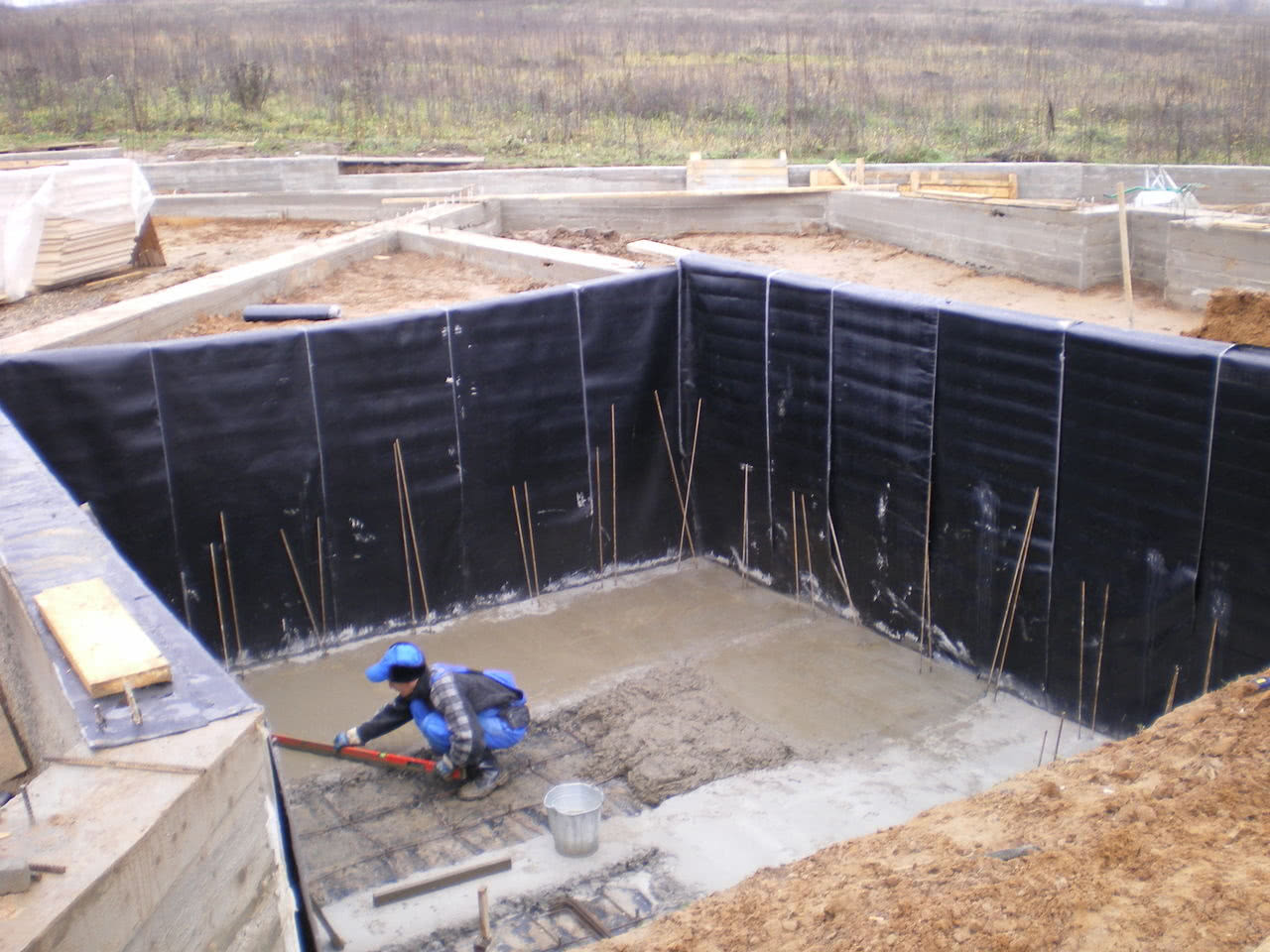 И в том, и в другом случае, основное внимание уделяется устройству гидроизоляции – особенно пола, через который чаще всего и просачивается вода. Что бы вы ни строили – даже если это простая бетонная площадка во дворе, в основании обязательно должна быть выполнена дренажная подготовка