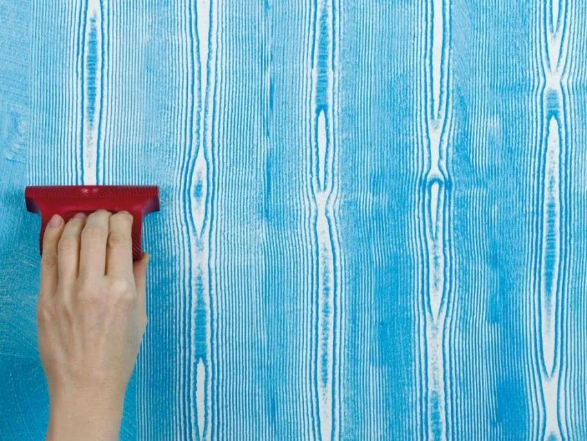 - Нанесение масляных и алкидных красок осуществляется вертикальными мазками. Далее состав хорошо растирается, после чего движения становятся горизонтальными. Акриловые краски можно сразу укладывать горизонтально (вдоль волокон дерева).