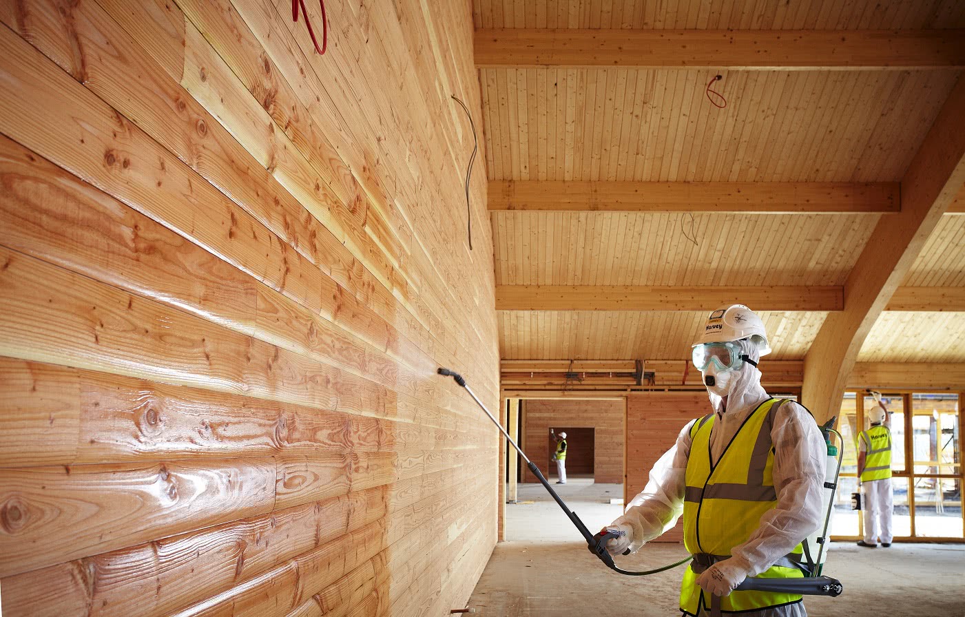 Древесина — капризный материал. Она подвержена атакам вредителями, микроорганизмов, грибка. Также это легковоспламеняющийся материал. Чтобы защитить отделку от угрожающих факторов, применяются различные защитные пропитки: