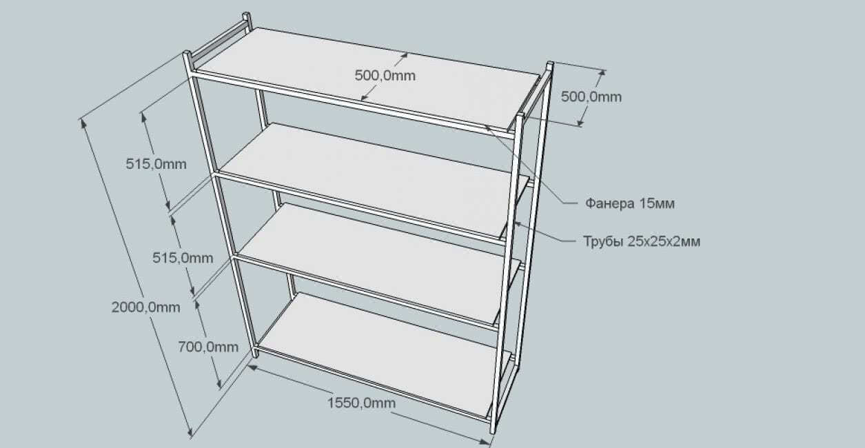 - материал для полок: металлические листы или ДСП, фанера и прочее.