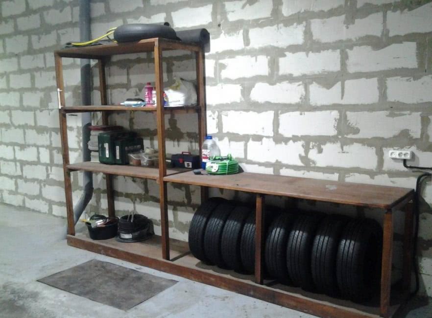 Конечно, у дерева в сравнении с металлами меньше преимуществ: легко портится, может разбухать со временем либо, наоборот, иссыхать. Но если провести грамотную его обработку, то такие полки прослужат в гараже достаточно долго, и жаловаться на них вам не придется.