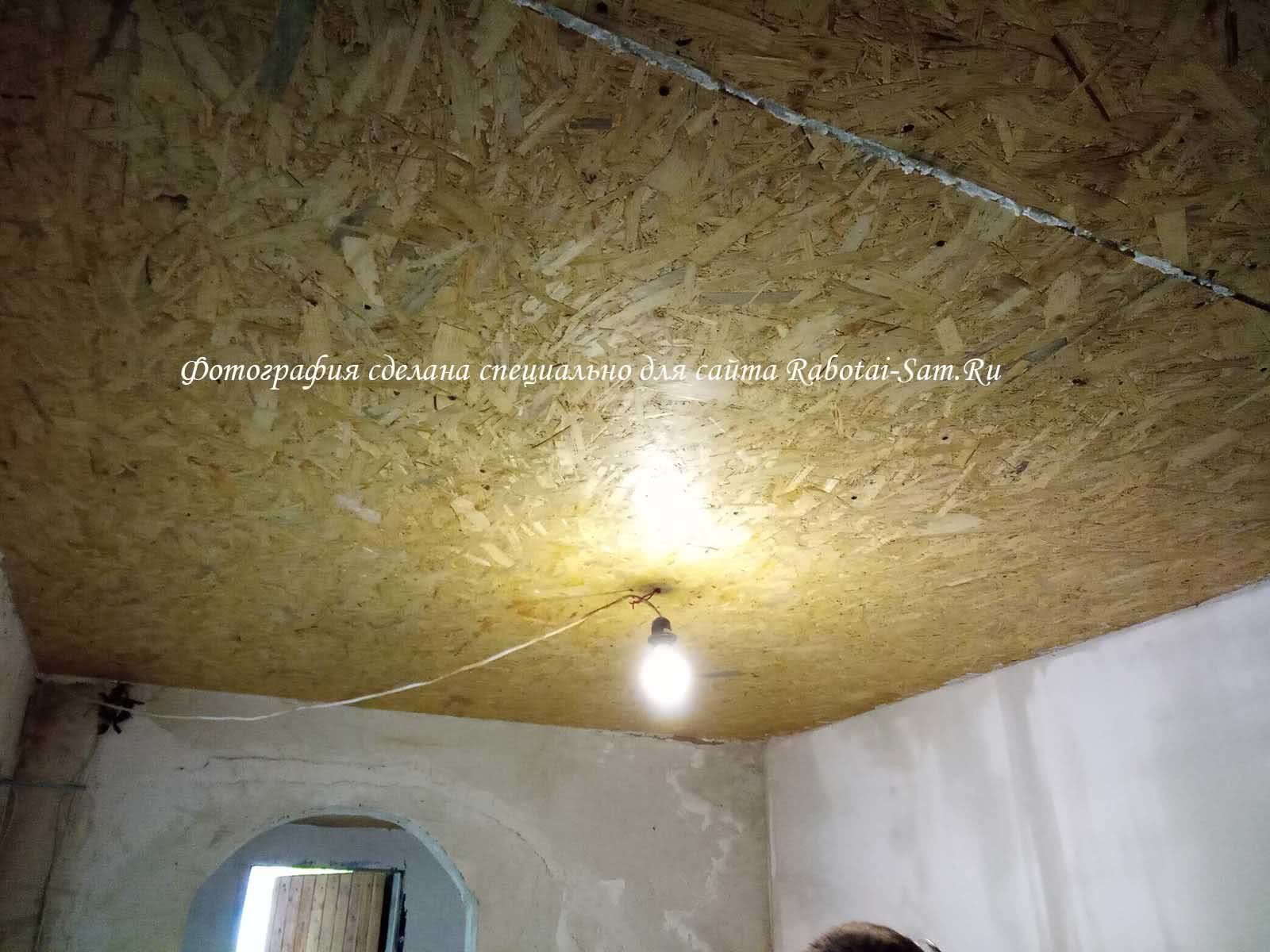 Более подробно об этих и других способах отделки потолков обшитых из ОСБ можно узнать из статьи — отделка потолков, обшитых ОСБ листами. Там же приведены правильные технологии отделки.