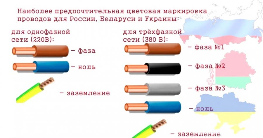 Чтобы подобрать более правильную фазировку во втором случае, ориентируйтесь на советы из статьи «Цветовая маркировка проводов. ГОСТы и правила.»