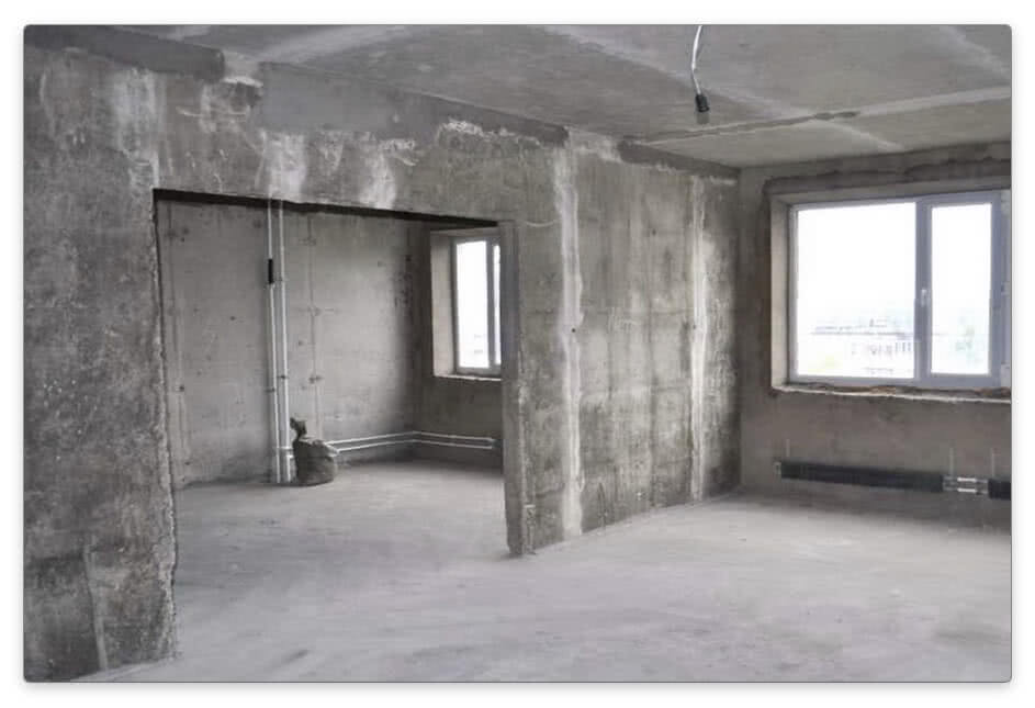 Вариант жилища без какого — либо ремонта встречается чаще всего в новостройках. При нем человек получает минимум коммуникаций (электричество, тепло, водоснабжение и канализация), голые стены и черновой пол. Из предустановленных элементов интерьера здесь остаются: бюджетные оконные рамы и аналогичные по качеству входные двери. Таким образом, открывается широкое поле для творчества дизайнера, а вместе с ним и перспективы грядущих расходов для владельца этой жилплощади.
