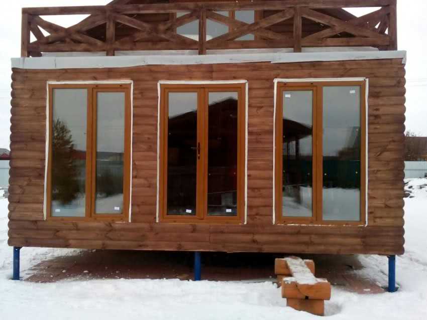 Наиболее доступным и простым способом строительства будет каркасная конструкция. Она не уступает по надежности капитальным объектам, но возводится в короткие сроки. В деревянном строении каркасом могут быть бревна или брус, для обшивки используются панели ДСП с вагонкой или блок-хаусом.