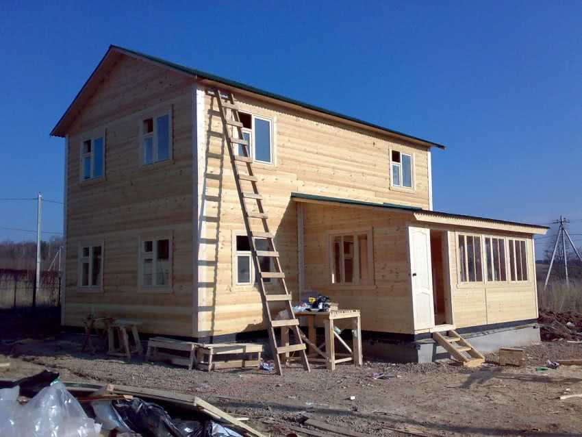 Более затратным вариантом является сооружение из бруса или бревен. Но внешне пристройка будет максимально гармонировать с основным деревянным домом. Такой объект имеет оптимальный микроклимат внутри.