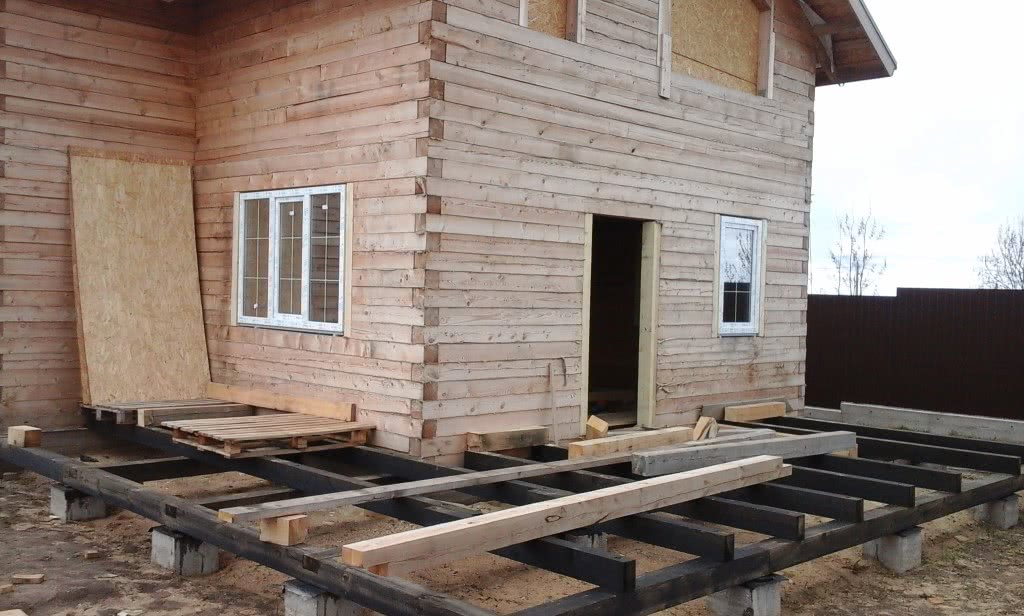 Так как терраса имеет меньший вес, чем дом, то процесс естественной усадки эти сооружений происходит неравномерно. Именно поэтому террасу не закрепляют к дому для исключения ее разрушения.