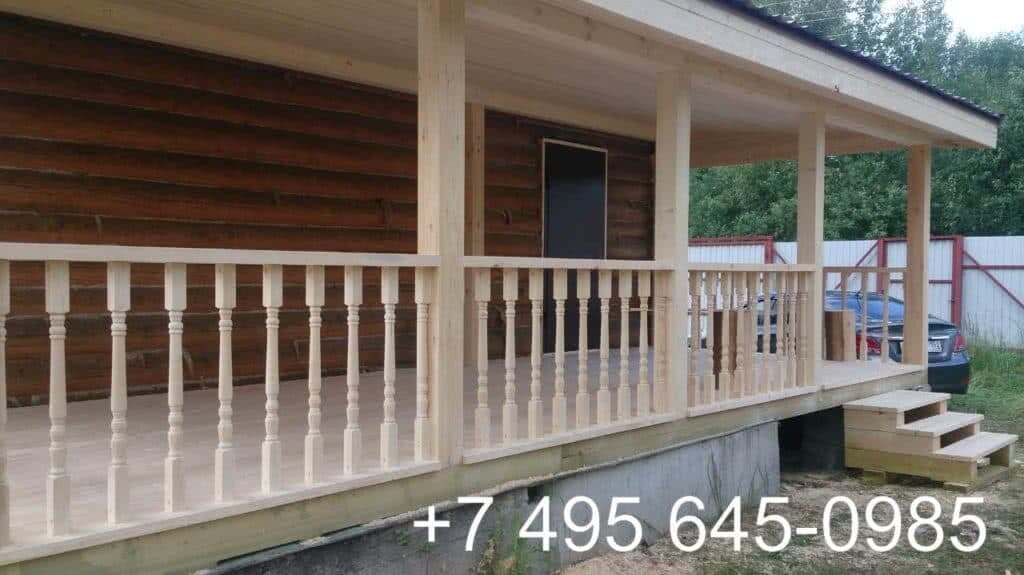 на манер финских домов. Может также производиться глухая зашивка этого пространства обшивочными материалами: вагонкой, фальшбрусом, блокхаусом, листовыми материалами. Пространство выше перил может оставаться открытым, зашиваться шпалерой или поликарбонатом. Часто это пространство остекляется, в этом случае перила заменяются подоконниками.