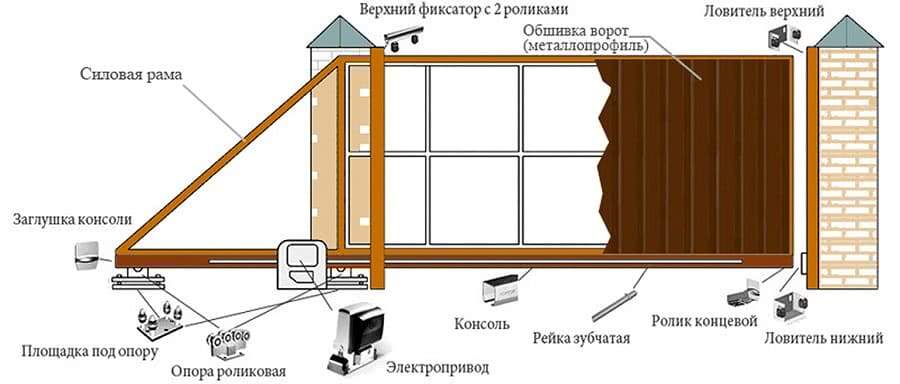 Для установки верхней и нижней ловушек, плюс верхнего кронштейна от бокового раскачивания, понадобятся дополнительные опоры (приходной столб, нащельник). Обычно это труба 60*40мм или 60*30мм.