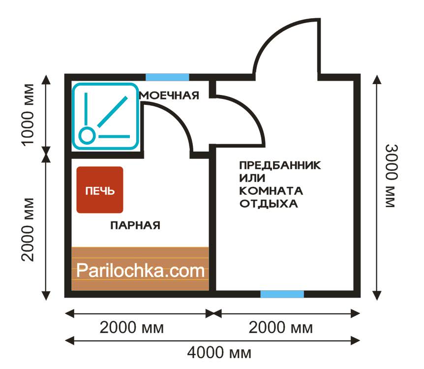Планировка (план) бани 3х4 мойка и парилка отдельно.