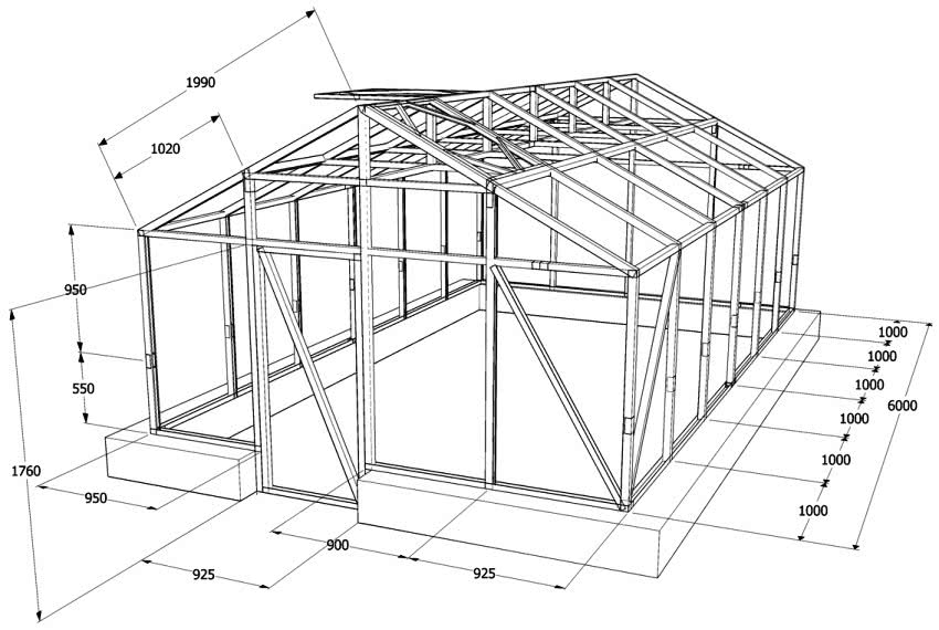 Когда схема основания готова, можно переходить к построению каркаса. В большинстве случаев чертежи прямоугольной беседки строятся в нескольких проекциях (вид по длинной и вид по короткой стороне), что позволяет получить представление об общем виде готового сооружения.
