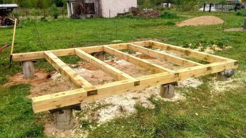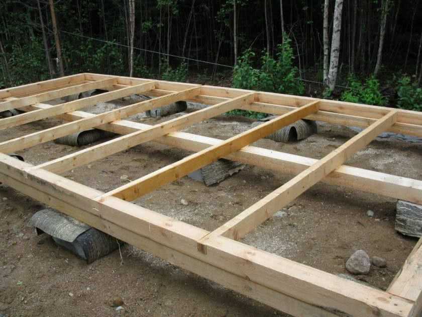 - Для надежной защиты деревянного каркаса строения от почвенной влаги на опоры укладываются куски рубероида (желательно – в несколько слоев).