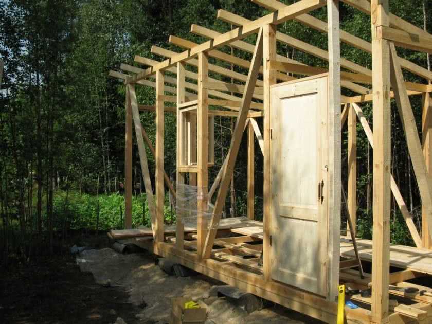 - Обработать брус или доски для каркаса бытовки и крыши.