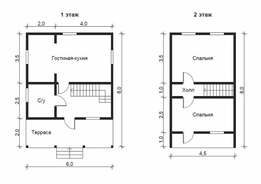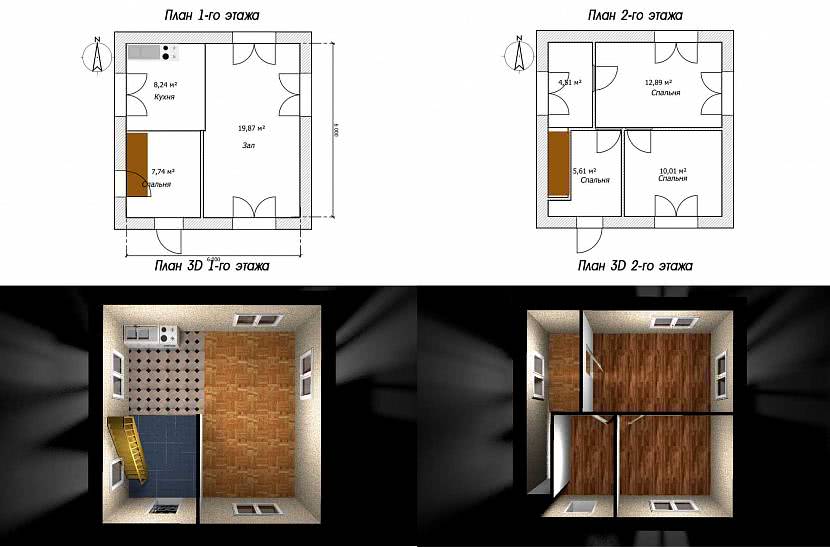 Рациональная планировка двух этажей дома площадью 6х6 при каркасном строительствеИсточник Letiy.ru