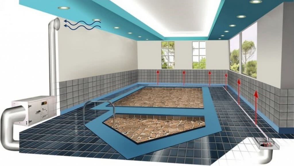 Вот почему в бассейнах вентиляционные установки обязательны. Если же речь идет об аквапарках или крытых спортивных бассейнах, обычно требуется и дополнительное осушение воздуха.