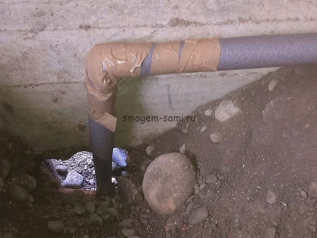 - В вырытых шурфах производят подсоединение магистрали к скважинному или колодезному насосу через отверстие, просверленное в стенках колодца перфоратором, аналогичным способом осуществляют подключение к линии дома через отверстие в фундаменте.