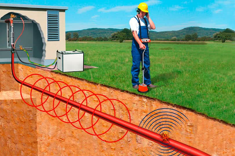 Для полного зондирования незнакомого участка на наличие подземных трасс – используются все способы. При этом выбор методики зависит от глубины укладки, и от фактического рабочего давления жидкости внутри трубопровода.