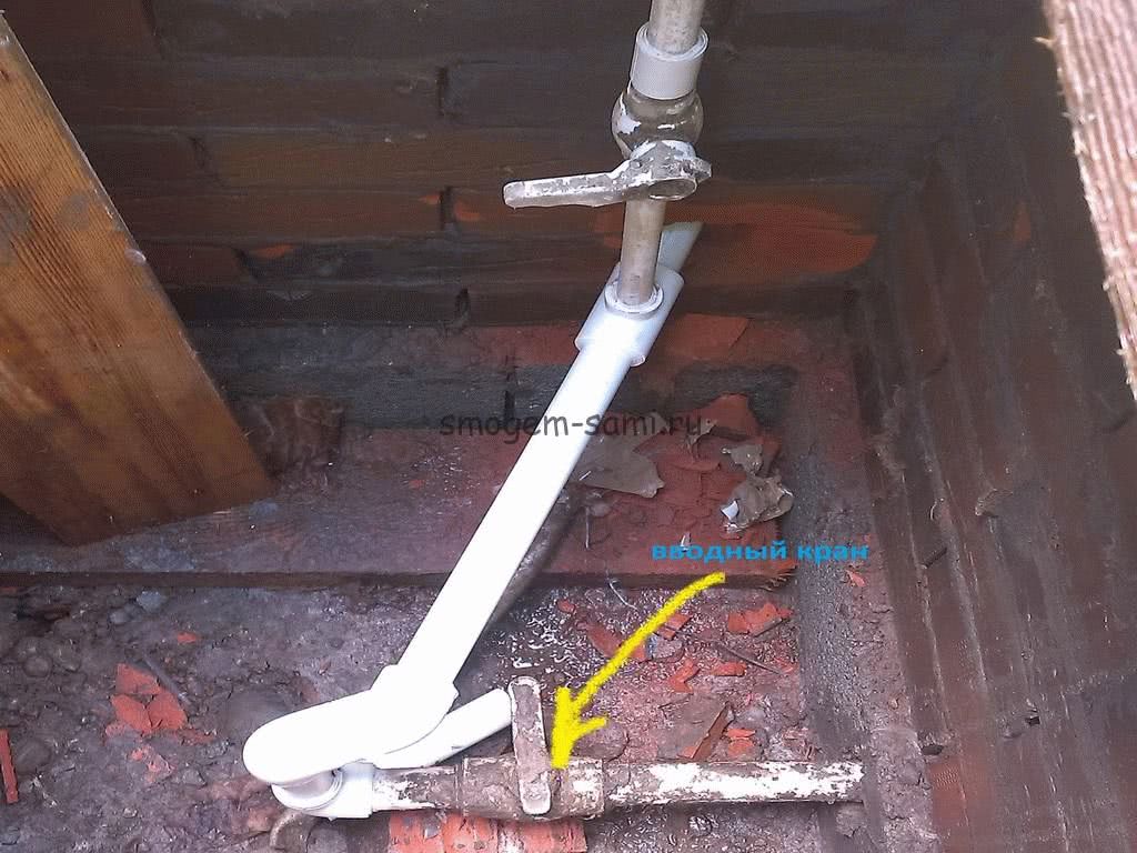 В этой точке нужно установить еще один вводный кран, который в дальнейшем будет основным, рабочим краном. Для удобства после крана можно вывести еще один гусак, на время проведения внутренних работ.