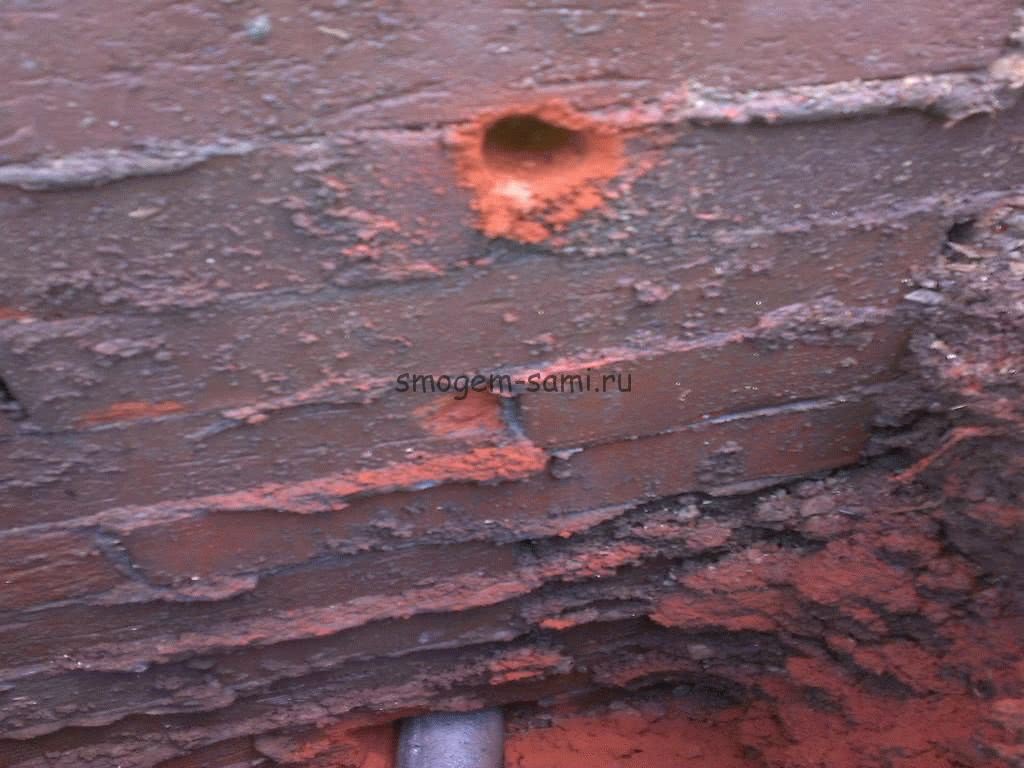 - В вырытых шурфах производят подсоединение магистрали к скважинному или колодезному насосу через отверстие, просверленное в стенках колодца перфоратором, аналогичным способом осуществляют подключение к линии дома через отверстие в фундаменте.