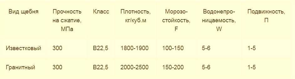 - Щебень гранитный 1,4 т/куб. м (1,3 т).
